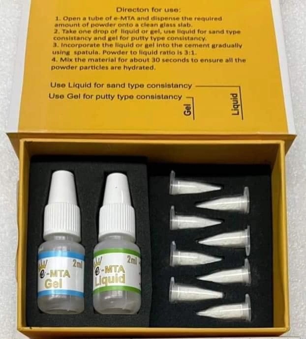 Xi măng sinh học e-MTA (Mineral Trioxide Aggregate), một vật liệu nha khoa được sử dụng cho các chỉ định nội nha.